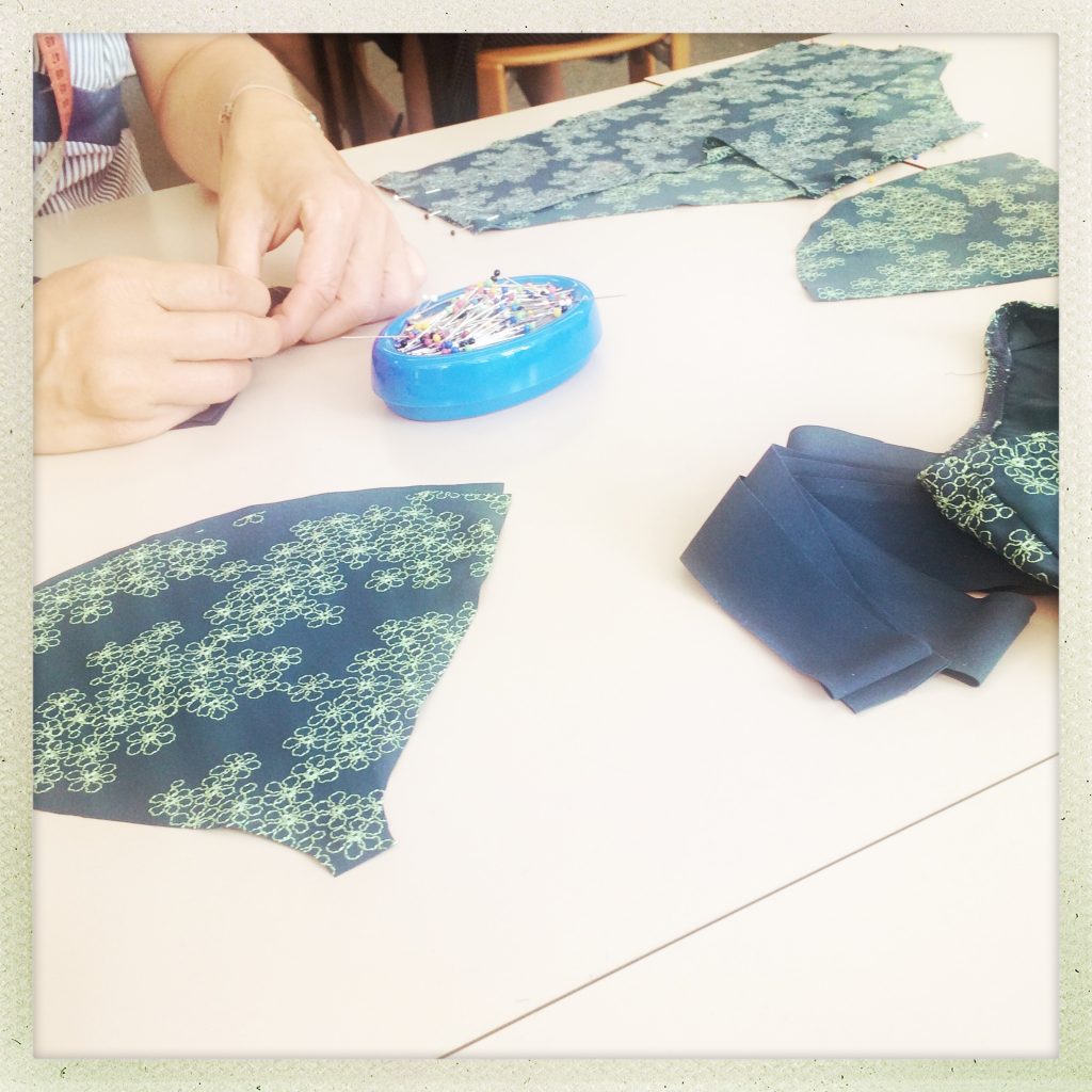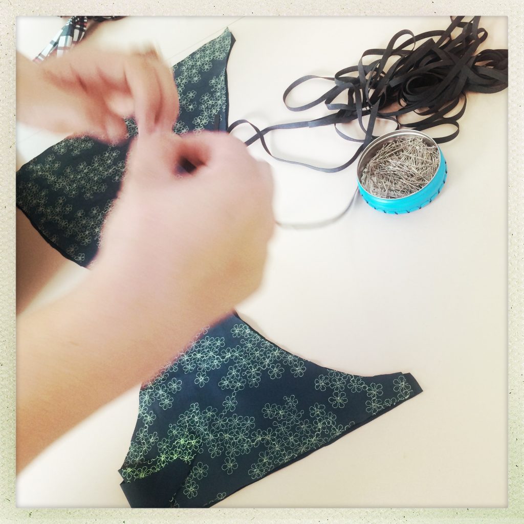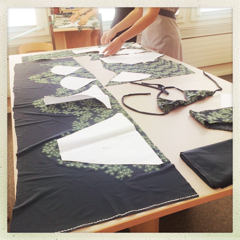 Nun, was soll ich sagen. Ich habe Hochachtung vor der Leistung einer Bikini-Näherin und ich muss unsere Produktionstätte in Lugano ein Kränzchen winden. Bisher hatte ich nur die Musterkollektion in den Händen und schon diese Teile überzeugen mich sehr. Am Ende dieses Workshop-Tages war mein Oberteil zwar fertig, aber der Slip leider noch nicht (bis heute noch nicht fertiggestellt). Claudine war tiffiger. Sie konnte ihr Bikini am Bade-Geburifest ihrer Tochter Smilla am nächsten Tag vorführen. So viel zur Arbeitsteilung.