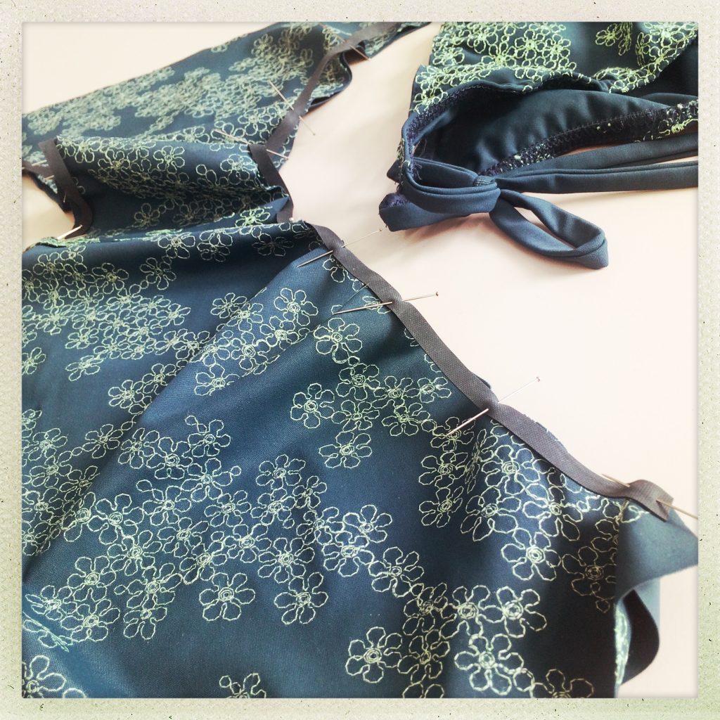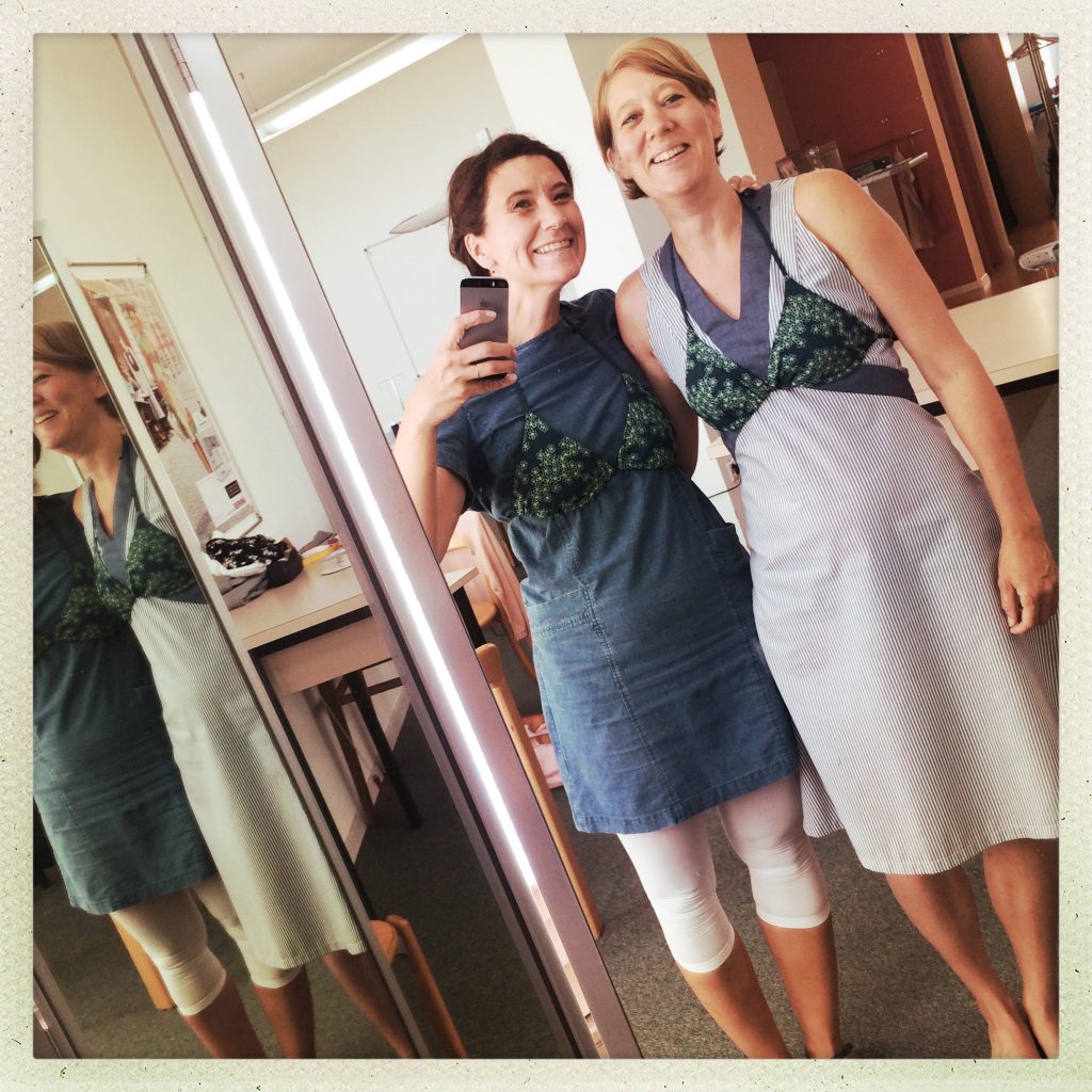 Es war mir absolut bewusst, aber ich wollte es trotzdem wissen. Anfangs Juli haben Claudine und ich bei Bernina einen Bikini-Workshop besucht und zwar wollte ich wissen, ob Bikini nähen wirklich so schwierig ist, wie alle sagen. Claudine ist eine sehr gute Freundin von mir, aber vor allem auch eine Prêt Pour Moi-Soulmate. Wir kennen uns schon lange. Wir haben mit süssen Zwanzig bei der Ausbildung zur Werbeassistentin zusammen die Schulbank gedrückt. Solche Ausbildungsphasen sind meist sehr verbindend. Vor ca. 2 Jahren haben sich unsere Wege wieder gekreuzt und dass sie in der Zwischenzeit Modedesign in Berlin studiert hat, war mir nicht entgangen. So kam es, dass sie mich bei meinem Herzprojekt «Swimwear» tatkräftig unterstützen konnte. Als Dankeschön musste sie sich nun auch selbst ein Bikini nähen. Die Konditionen waren klar. Natürlich musste es ein Schnitt von Prêt Pour Moi sein und natürlich auch ein Stickereistoff von Prêt Pour Moi. Sie war damit einverstanden. Sehr!